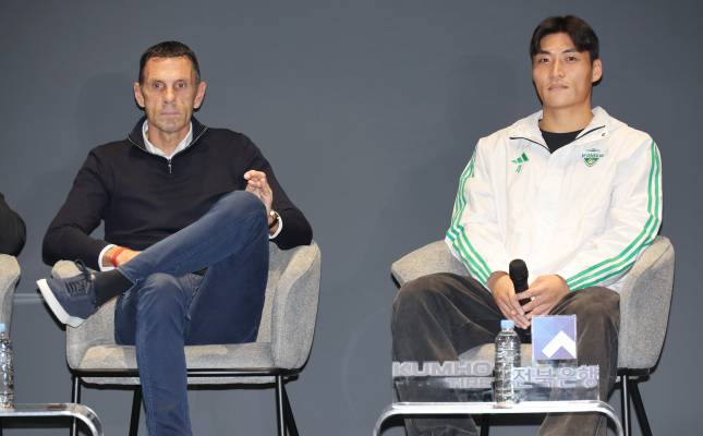 “네가 MVP 후보야” “내가 만난 감독 중 최고” 웃음 끊이질 않은 포옛과 ‘주장’ 박진섭 [IS 전주]