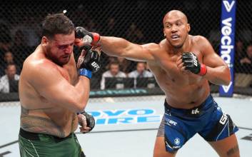 한편 이날 언더카드 제2 경기에 출전한 ‘코리안 타이거’ 이정영(29)은 2연패 늪에 빠졌다. 이정영은 ‘윌리캣’ 다니엘 산토스(30∙브라질)의 근거리 난타전과 테이크다운에 밀려 3라운드 종료 후 만장일치 판정패(30-27, 30-27, 30-27)했다. 1라운드에는 유효타에서 35 대 33으로 앞서며 잘 싸웠지만 2라운드부터 진흙탕 싸움에 말려들어 급격히 체력이 떨어지며 완패했다. 레슬링에서 밀린 게 결정적이었다. 이정영은 산토스를 피니시하기 위해 강력한 훅 펀치를 휘둘렀지만 이게 산토스에게 테이크다운 기회가 됐다. 산토스는 6차례 테이크다운에 성공하고 6분 6초를 유리한 포지션에서 컨트롤하며 무난하게 승리를 가져갔다. 이로써 이정영의 통산 전적은 11승 3패(UFC 1승 2패)가 됐다. 아시아를 호령했던 한국 호랑이는 지난해 7월 하이더 아밀전 1라운드 펀치 TKO 패배에 이어 또 한 번 세계 무대의 벽을 실감했다. 이번 패배는 경기 2주 전 대체 선수로 들어온, 2년 만에 복귀한 한 체급 아래의 선수에게 졌다는 점에서 더 뼈아프다. 산토스는 경기 후 인터뷰에서 “오랜만에 복귀해 초반에는 거리를 잡는 게 어려웠고, 살짝 고전했다”고 밝혔다. 이어 “처음에는 이정영과 난타전을 벌이길 원했다. 그러다가 마음을 바꿔 레슬링을 하기로 마음 먹었다”고 설명했다. 아직 ‘스마트 타이거’로 진화하지 못했다. 이정영은 경기 전 영리하게 경기를 운영하겠다고 밝혔다. 허나 팔길이가 훨씬 더 긺에도 계속해서 상대에게 근거리 난타전에 휘말렸다. Road to UFC 시즌 1 페더급 결승부터 약점으로 지적됐던 레슬링 방어 능력 보완도 숙제로 남았다.김희웅 기자