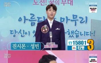 성빈이 새해 소망을 밝혔다.30일 방송된 KBS1 교양프로그램 '아침마당'에서는 '도전 꿈의무대' 5승 가수 특집으로 꾸며졌다. 김재원, 이정민 아나운서의 진행 하에, 개그맨 황기순, 방송인 김혜영, 가수 김철민이 패널로 참여했으며, 가수 설운도-효성, 고정우-박구윤, 진시몬-성빈 등이 듀엣 무대를 꾸몄다.이중 성빈은 샤르코마리투스 병으로 건강이 좋지 않은 상태지만 "내년에 꼭 등산에 도전해보고 싶다. 산 정산에 서서 사진도 찍을 것"이라고 밝혀 감동을 자아냈다.샤르코마리투스 병은 손과 발의 근육이 위축되고 변형되는 질병으로 현재 치료약이 없다. 오래 서 있을 수 없고, 계단을 오르내리기 힘들다.실제로 성빈은 "어디서든 갑자기 쓰러져버릴 수 있다. 솔직히 아직 병이 진행 중이라, 많이 무섭다"면서, "그렇지만 아버지가 제 병을 고치기 위해 가수의 꿈을 포기하고 밤낮없이 일을 하시고 계신다. 아버지를 위해서 가수로 꼭 성공하고 싶다"고 밝혀 뭉클함을 자아냈다.성빈은 "이번 '도전! 꿈의 무대' 5승으로 인해 최근 제 팬클럽이 생겼다. 또 지난 11월에는 대학로에서 콘서트도 했다. 내년 3월에는 신곡을 내고 쇼케이스도 한다"고 밝혔다.이어 진시몬과 '흙에서 살리라'를 불러 감동을 선사했다.최주원 기자