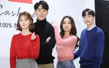 하트시그널 시즌2 출연자 임현주(왼족부터), 이규빈, 김장미, 정재호가 4일 서울 중구 명동 유니클로 명동중앙점에서 열린 ‘유니클로 캐시미어 스페셜존 오픈 기념’ 포토행사에 참석해 포즈를 취하고 있다.김진경 기자 kim.jinkyung@jtbc.co.kr/2018.10.04/ 2018.10.04 11:21