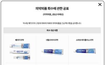 애경산업은 구강용품에서 사용 금지된 물질이 나온 제품 6종에 대해 자발적 회수에 나선다고 6일 밝혔다. 중국 도미(Domy)가 제조하고 애경산업이 수입·판매하는 제품들이다.회수 대상이 된 제품은 '2080 베이직치약', '2080 데일리케어치약', '2080 스마트케어플러스치약', '2080 클래식케어치약', '2080 트리플이펙트알파후레쉬치약', '2080 트리플이펙트알파스트롱치약' 등이다.애경산업은 지난해 12월 자체 검사 결과 보존제 성분인 트리클로산이 미량 혼입된 사실이 확인돼 즉시 제품의 수입과 출고를 중단하고 식품의약품안전처에 회수 결정을 보고했다고 설명했다.해당 제품을 보유한 소비자는 제조일자, 구매처, 구매일자, 사용 여부, 본인구매 여부, 영수증 소지 여부 등과 상관없이 애경산업 치약 회수 전담 고객센터 또는 홈페이지로 신청하면 제품 구매 금액을 전액 환불받을 수 있다.애경산업 관계자는 "이번 회수 대상 제품 이외의 모든 치약 제품은 국내에서 생산되고 있고 품질이나 성분에 문제가 없다"고 했다.서지영 기자 2026.01.07 11:51