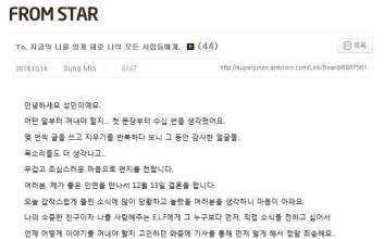 성민-김사은 결혼 발표, '진심으로 감사한 마음, 속도위반은 절대 아냐'결혼설이 이슈가 되었던 그룹 슈퍼주니어의 성민과 뮤지컬배우 김사은이 결혼을 발표했다.14일 성민은 SM 공식 홈페이지를 통하여 "지금까지 저를 도와주신 모든 분들 그리고 저의 결정을 믿고 존중해준 멤버들과 회사에게도 진심으로 감사한 마음입니다. 앞으로도 열심히 활동하면서 여러분의 사랑에 보답하는 성민이가 될게요"라고 결혼 발표후 소감을 전했다.김사은 소속사 관계자 역시 매체와의 통화에서 "조만간 결혼과 관련된 공식 입장을 전할 예정"이라고 밝히며 "속도위반은 절대 아니다"라고 일축했다. 두 사람은 열애를 인정한 지 한 달 만에 결혼 발표까지 '초스피드'로 진행됐다.한편 최근 온라인을 통해 퍼졌던 증권가 정보지(찌라시)에는 성민을 암시하는 2세대 아이돌의 결혼 소식이 담겨있어 눈길을 끌고 있다. 이 정보지의 예상이 맞았던 것이다.해당 정보지에는 "축하할 일입니다. 정확한 기준은 없지만, 보통 2세대로 분류되는 아이돌 중 원더걸스 선예에 이어 남자아이돌 중에서도 처음 유부남이 나오게 됐네요. 결혼한다고 해서 그룹활동에서 빠지지도 않을 것 같고요. 부디 결혼하고 나서도 멋진 활동 부탁드려요"라는 내용이 담겨졌던 바가 있다.한편, 성민의 소속사 SM엔터테인먼트도 성민의 결혼 소식에 "성민아~ 결혼 축하해! 너의 미래에 행복과 축복이 함께하길. 사랑한다"라는 글을 게재했다. 현재 성민이 속한 슈퍼주니어는 7집 정규앨범 'MAMACITA'를 발매하고 방송을 통해 활발한 활동을 펼치고 있다. 성민-김사은 결혼 발표 소식을 접한 누리꾼들은 "성민-김사은 결혼, 정말 초고속 결혼이네", "성민-김사은 결혼, 오전부터 하루종일 논란이었는데", "성민-김사은 결혼, 찌라시가 사실이었네", "성민-김사은 결혼, 팬들 쿠크 깨지겠다", "성민-김사은 결혼 축하해요. 행복하세요" 등의 다양한 반응을 보였다.온라인 일간스포츠사진 = 김사은 페이스북 / SM엔터테인먼트