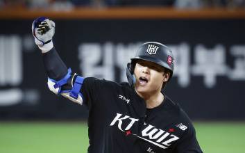 KT 위즈 강백호의 방망이가 늦은밤 대전의 하늘을 또다시 갈라 놓았다.KT는 7일 대전 한화생명볼파크에서 벌어진 한화 이글스와의 원정경기에서 내내 밀리다가 5-4 역전승을 거뒀다. 9회 초 터진 강백호의 역전 투런홈런이 결정타였다. 경기 초반은 라이언 와이스를 선발로 내세운 한화의 페이스였다. 0-0이던 4회 말 2사 2,3루에서 안치홍이 KT 선발 고영표의 낮은 체인지업을 때려 2타점 중전안타를 날렸다. 이어 한화는 6회 말 채은성이 투런포(시즌 17호)를 때리며 4-0으로 달아났다. 그러나 6이닝 무실점으로 임무를 완수한 와이스가 내려가자마자 분위기가 바뀌었다. 7회 초 KT의 새 외국인 선수 앤드류 스티븐슨이 김종수를 상대로 경기장 오른쪽 몬스터월을 넘기는 KBO리그 첫 홈런을 신고했다. 9회 초 KT의 화력이 더 뜨거워졌다. 스티븐슨의 몸에 맞는 볼과 허경민의 안타로 만든 무사 1,2루에서 한화는 마운드를 박상원에서 왼손 조동욱으로 바꿨다. 우타자 안현민 타석에서 폭투가 나와 무사 2,3루가 됐고. 안현민은 좌익수 희생 플라이를 날려 3-4로 추격했다. 이어 등장한 강백호는 초구부터 풀스윙을 돌렸다. 높게 날아든 직구(146㎞)를 강타. 비거리 120m짜리 좌중월 역전 투런포를 날렸다. 5일 한화전에서 김서현을 상대로 3타점 결승타를 때린 강백호는 이날도 5타수 2안타(1홈런)을 날리며 한화전 위닝시리즈(2승 1패)를 이끌었다.KT는 9회 말 마무리 박영현도 다소 흔들렸다. 1사 1,2루에서 위기에서 3번 문현빈을 헛스윙 삼진, 4번 노시환을 스탠딩 삼진으로 잡아내며 시즌 29호 세이브째 거뒀다. 대전=김식 기자 2025.08.07 22:33
