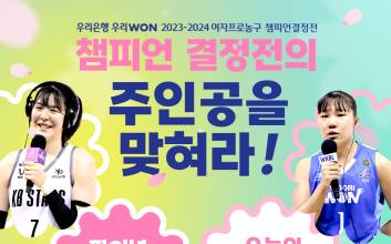 WKBL(한국여자농구연맹)이 24일부터 시작되는 ‘우리은행 우리WON 2023~2024 여자프로농구’ 챔피언결정전을 맞이해 SNS 팬 참여 이벤트를 마련했다.이번 이벤트는 WKBL 공식 인스타그램에서 진행되며, ‘파이널 시리즈 예측’과 ‘오늘의 수훈 선수 맞히기’ 등 두 가지 내용으로 진행된다.‘파이널 시리즈 예측’은 KB스타즈와 우리은행의 챔피언결정전 우승팀과 시리즈 전적을 예측하는 이벤트다. 21일부터 24일 정오까지 참여할 수 있으며, 몰텐 농구공(1명), 몰텐 소장용 골든볼(1명), WKBL 스포츠카드(3명), 치킨 세트(3명), 영화 관람권(2명) 등 총 10명에게 푸짐한 선물을 증정한다.오늘의 수훈 선수 맞히기 이벤트는 챔피언결정전 매 경기 진행된다. 경기 종료 후 실시하는 중계방송사 수훈 선수 인터뷰의 주인공을 맞히면 된다. 이벤트 게시물에 매 경기 시작 1시간 전까지 댓글로 참여할 수 있고 정답자 3명을 추첨해 커피 쿠폰을 제공한다.한편, 정규리그 1위 KB스타즈와 2위 우리은행의 챔피언결정전은 24일 13시 35분 청주체육관에서 열리는 1차전을 시작으로 5전 3선승제로 펼쳐진다.차승윤 기자 chasy99@edaily.co.kr 2024.03.21 10:40