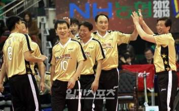 올스타전 이벤트 경기에서 영걸스를 이긴 올드보이즈가 출전 수당 600만 원의 절반인 300만 원을 KBS 불우이웃돕기 성금으로 냈다고 한국배구연맹(KOVO) 관계자가 13일 밝혔다. 50대 이상 현역 감독과 배구인으로 구성된 올드보이즈는 올스타전 메인 경기에 앞서 15점 단 세트 경기로 치러진 영걸스전에서 8명이 뛴 끝에 17-16으로 승리했다. 남녀 간의 대결은 올스타전에서 처음으로 치러졌다. KOVO는 또 구자준 총재 취임식 때 화환 대신 받은 쌀 350㎏를 서울시 송파구청에 기탁했다. 사진=정시종 기자/잠실학생체육관 2013.01.13 17:22