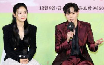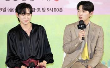 배우 김영대, 김우석이 8일 오후 서울 용산구 CGV용산아이파크몰에서 진행된 MBC 새 금토드라마 ‘금혼령, 조선 혼인 금지령‘ 제작발표회에 참석해 취재진의 질문에 답하고 있다.‘금혼령, 조선 혼인 금지령’은 7년 전 세자빈을 잃고 금혼령을 내린 왕 이헌 앞에 죽은 세자빈으로 빙의할 수 있다는 혼인 사기꾼 소랑이 나타나 벌이는 센세이셔널 궁궐 사기극이다.오는 9일 밤 9시 50분에 첫 방송된다.서병수 기자 qudtn@edaily.co.kr /2022.12.08.