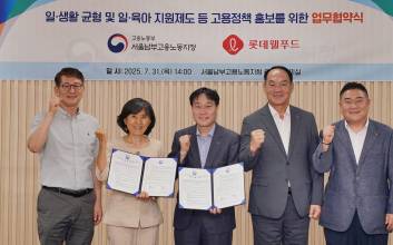 롯데웰푸드는 고용노동부 서울남부지청과 ‘일·생활 균형 및 일·육아 지원제도 홍보’를 위한 업무협약을 체결했다고 1일 밝혔다.지난 7월 31일 고용노동부 서울남부지청에서 진행된 협약식에는 최규상 롯데웰푸드 ESG부문장 및 김도영 롯데웰푸드 노조위원장, 강영환 롯데웰푸드 기업문화팀장 그리고 송민선 고용노동부 서울남부지청장, 김종호 서울남부지청 지역협력과장을 비롯한 실무 담당자들이 참석했다. 이번 협약을 통해 롯데웰푸드는 서울남부지청과 손을 맞잡고 건강한 일터 문화를 확산시키는 협약 기업으로 다양한 활동을 펼칠 계획이다. 협약에 따라 롯데웰푸드는 오는 10월부터 ‘롯샌 파인애플’에 ‘일·생활 균형 캠페인’ 홍보 마크를 삽입한 캠페인 패키지 제품을 선보일 계획이다. 소비자들이 제품을 즐기면서 자연스럽게 일·생활 균형 캠페인에 동참하고 그 의미를 되새길 수 있도록 한다.또 롯데웰푸드 본사를 비롯한 전국 공장에 ‘일·육아 지원제도’ 홍보 영상을 하루 1440회 이상 송출한다. 이를 통해 임직원뿐만 아니라 회사를 방문하는 모든 이들에게 일과 가정이 양립하는 문화의 중요성을 알릴 예정이다.롯데웰푸드는 지난해 고용노동부 주관 '제1회 2024년 대한민국 일·생활 균형 우수기업'으로 선정된 바 있다. 유연근무 활용, 근로시간단축, 휴가 사용, 일·육아 병행, 등 일하는 방식과 문화를 지속적으로 개선하는 점에서 높은 평가를 받았다. 이번 캠페인을 통해 모범적인 기업 문화를 사회 전반으로 확산시키는 데 기여할 것으로 기대된다.권지예 기자 kwonjiye@edaily.co.kr 2025.08.01 10:22