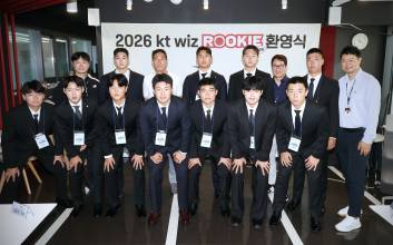 KT 위즈의 2026년 신인들이 수원 KT위즈파크를 찾았다. 1라운더 박지훈(전주고)을 비롯한 2026년 신인 11명은 23일 KT와 키움 히어로즈의 2025 신한은행 SOL 뱅크 KBO리그 경기가 열린 수원 KT위즈파크를 찾아 처음으로 팬들에게 인사하는 자리를 가졌다. 11명의 선수들과 가족들이 참석한 가운데, 선수들은 롤모델 선배들이 손글씨로 적은 입단 환영 메시지를 받고 행사를 시작했다. 1라운더 투수 박지훈은 소형준에게, 2라운더 내야수 이강민(유신고)은 허경민에게 특별 메시지를 받았다. 3라운더 내야수 김권휘(충암고)-안현민, 4라운더 내야수 임상우(단국대)-김상수, 5라운더 투수 고준혁(동원과기대)-고영표, 6라운더 내야수 이재원(마산고)-안현민, 7라운더 외야수 김경환(배재고)-김민혁, 8라운더 투수 정현우(인천고)-허경민, 9라운더 투수 이민준(휘문고)-황재균, 10라운더 투수 김휘연(장안고)-원상현, 11라운더 포수 김유빈(전주고)-강백호 등도 각자의 선배들에게 응원을 받았다.