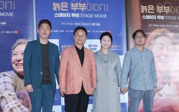 신태연 감독과 배우 김명곤, 차유경, 위성신 감독이 6일 오후 서울 용산구 CGV 용선에서 열린 영화 '늙은 부부이야기: 스테이지 무비' 시사회 포토타임에서 포즈를 취하고 있다. '늙은 부부이야기: 스테이지 무비'(감독 신태연)는 30년 전 남편을 잃고서 세 딸을 홀로 키워 출가시킨 이점순에게 사내 박동만이 불쑥 찾아온다는 황혼의 '끝사랑'에 관한 이야기로 스테디셀러 연극을 영화 버전으로 영상화했다. 배우 김명곤과 차유경이 열연한 늙은 부부이야기는 19일 개봉한다.김진경 기자 kim.jinkyung@jtbc.co.kr/2020.08.06/ 2020.08.06 17:22
