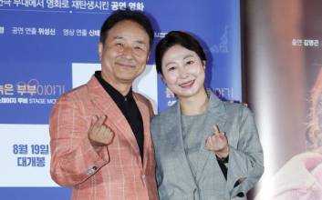 배우 김명곤과 차유경이 6일 오후 서울 용산구 CGV 용선에서 열린 영화 '늙은 부부이야기: 스테이지 무비' 시사회 포토타임에서 포즈를 취하고 있다. '늙은 부부이야기: 스테이지 무비'(감독 신태연)는 30년 전 남편을 잃고서 세 딸을 홀로 키워 출가시킨 이점순에게 사내 박동만이 불쑥 찾아온다는 황혼의 '끝사랑'에 관한 이야기로 스테디셀러 연극을 영화 버전으로 영상화했다. 배우 김명곤과 차유경이 열연한 늙은 부부이야기는 19일 개봉한다.김진경 기자 kim.jinkyung@jtbc.co.kr/2020.08.06/ 2020.08.06 17:18