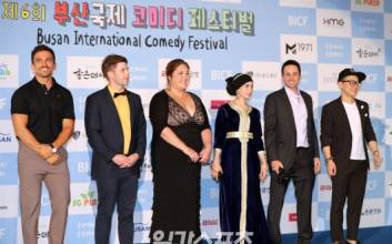 제6회 부산국제코미디페스티벌 개막식이 24일 오후 부산 해운대 영화의 전당 야외무대에서 열렸다.외국인홍보단(권필, 안드레아스, 케일린, 알렉스, 크리스, 김미소)이 블루카펫 행사에 참석하고 있다.10개국 40여개 팀이 참가하는 올해 부산국제코미디페스티벌은 9월 2일까지 열흘간 부산 영화의 전당 일원에서 펼쳐진다.부산=김민규 기자 kim.mingyu@jtbc.co.kr /2018.08.24/ 2018.08.24 21:27