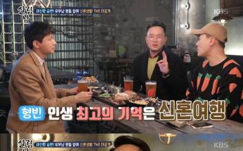 김승현이 팔불출 면모를 뿜어냈다. 4일 오후 방송된 KBS 2TV '살림하는 남자들' 시즌2에는 새신랑 김승현이 개그맨 윤형빈, 변기수와 만나는 모습이 그려졌다. 코로나19를 의식한 듯 '2월 초에 촬영한 내용'이라는 자막이 공지로 떴다. 밖에서 만난 세 사람. 김승현은 "변기수 형은 우리 가족 행사에 빠지지 않고 늘 함께해준다. 결혼식 사회도 봐줘 고마웠다. 윤형빈 형은 격한 스포츠를 함께하다 보니 친해졌고 전 국민이 아는 사랑꾼이지 않나. 조언을 들을 겸 모이자고 했다"고 말했다. 신혼 2개월 차 김승현은 "누군가 날 기다려준다는 게 좋더라. 혼자 살 때와는 다르더라"면서 수줍게 웃었다. 윤형빈은 "설렘과 행복이 있는데 인생 최고의 기억은 신혼여행이다. 나만 그런 줄 알았는데 모든 부부가 그렇더라"고 회상했다. 변기수는 "그때 그 아내의 미소를 다시 볼 수 있다면 10년마다 여행을 가려고 한다"고 너스레를 떨었다. 그런데 김승현은 아직 신혼여행을 떠나지 못한 상황. 윤형빈과 변기수는 화들짝 놀라며 "신혼여행을 안 갔다는 것은 결혼생활 전체가 비상상태다"라면서 "신혼여행지를 정해 빨리 가라"고 조언했다. 팔불출 김승현은 "(아내가) 잔소리를 하는데 다 날 위해서 하는 것이다. 친절하게 한다. 스케줄을 미리 말하지 않아 싸운 적이 있다. 하지만 그건 내가 잘못한 것이다. 식사도 잘 차려준다"면서 은근슬쩍 아내를 자랑했다. 황소영 기자 hwang.soyoung@jtbc.co.kr
