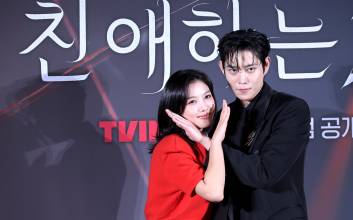 김유정, 김영대가 30일 오후 서울 용산구 CGV용산아이파크몰에서 열린 티빙 오리지널 ‘친애하는 X’ 제작발표회에서 포토타임동안 포즈를 취하고 있다. 오는 11월 6일 공개되는 ‘친애하는 X’는 지옥에서 벗어나 가장 높은 곳으로 올라가기 위해 가면을 쓴 여자 백아진(김유정), 그녀에게 잔혹하게 짓밟힌 X들의 이야기를 그린다. 김민규 기자 mgkim1@edaily.co.kr /2025.10.30/ 2025.10.30 14:54