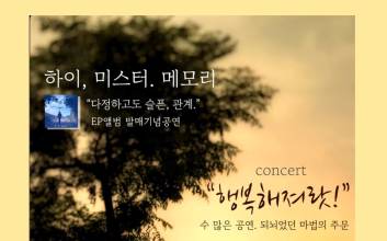 오랫동안 솔로 싱어송라이터로 활동해 온 그는 드러머 곽지웅, 콘트라베이스 연주자 오정택, 키보디스트 홍종화와 함께 하는 작업으로 음악적 변화를 줬다. 덕분에 모던포크를 기반으로 한 그의 음악은 더욱 풍성해졌고, 세계 또한 확장됐다. 하이미스터메모리는 “만나고 떠나보내는 관계들 속 사람들에게 전하는, 애정 어린 시선으로 쓴 곡들”이라며 “쉬지 않고 무대에 섰던 열정으로 새로운 음악 활동의 시작을 알리는 신호탄같은 앨범”이라고 밝혔다. 하이미스터메모리는 앨범 발매를 기념해 오는 29일 오후 7시 30분 서울 서교동 구름아래 소극장에서 ‘행복해져랏!’ 타이틀의 단독 콘서트를 개최한다. 콘서트에는 곽지웅(드럼), 오정택(콘트라베이스), 홍종화(키보드), 김유리(바이올린)을 비롯해 평소 두터운 친분을 자랑하는 클래식 기타리스트 고의석이 함께 한다.