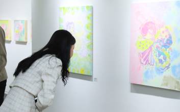 사랑과 용기의 색으로 마음을 어루만지는전시 ‘빛나는 너에게 건네는 이야기-빛나는, 용기의 색들’(A Gnetle Story of Light for you-Shine: Colors of Courage) 오프닝 리셉션이 9일 오후 서울 중구 순화동 KG타워 지하 1층 갤러리선에서 열렸다.