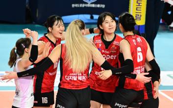 '장위 제공권 장악' 페퍼, 창단 처음으로 1R·1차전 승리...장소연 감독 데뷔전서 웃었다