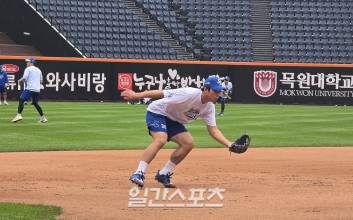 "100%입니다."플레이오프(PO·5전3선승제)를 앞둔 삼성 라이온즈에 천군만마가 찾아왔다. 거포 내야수 김영웅이 돌아왔다. 삼성은 17일 대전 한화생명볼파크에서 한화 이글스와 2025 신한은행 SOL 뱅크 KBO 포스트시즌(PS) PO 1차전을 치른다. 정규시즌을 4위로 통과한 삼성은 5위 NC 다이노스와의 와일드카드 결정전(WC·2선승제)에서 2승 1패를 거두고 준플레이오프(준PO·5전3선승제)에 진출했다. 이어진 3위 SSG 랜더스와의 준PO에선 3승 1패를 기록하며 업셋에 성공했다. 이날 경기 전 포인트는 역시 김영웅의 복귀였다. 김영웅은 지난 13일 SSG 랜더스와의 준플레이오프 3차전 수비 도중 허리를 삐끗하며 전열에서 이탈했다. 준플레이오프 4차전 출전도 불발됐다. 1차전 쐐기 2점포에 3차전에서도 쐐기 적시타 포함 안타 2개를 쳤던 김영웅의 이탈은 삼성으로선 악재였다. 투수력 강한 한화와의 PO 복귀가 주요 관심사였다. 이날 경기장에 도착한 김영웅은 바로 3루 수비 훈련에 나섰다. 수비 훈련 전 취재진과 잠깐 만난 김영웅응 "몸 괜찮나"는 기자의 질문에 "easy 합니다(괜찮습니다)"라며 싱긋 웃었다. 이후 3루 수비 훈련을 마친 뒤 다시 만난 김영웅은 "몸 상태가 100%다"라며 자신했다. "수비 도중에 생각보다 공이 안 튀어 올라서 허리를 숙였는데 통증이 올라왔다. 현재 몸 상태는 경기에 나서는 데 지장은 없다"고 덧붙였다.