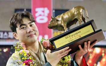노범수(울주군청)가 추석씨름대회에서 태백장사(80㎏ 이하)에 올랐다. 노범수는 5일 울산 울주종합체육센터에서 끝난 위더스제약 2025 울주추석장사씨름대회 태백장사 결정전서 허선행(수원특례시청)의 기권을 받아내 우승했다.노범수는 이날 승리로 통산 24번째(태백장사 20회, 금강장사 4회) 꽃가마를 탔다.노범수는 첫 번째 판에서 허선행이 잡채기를 시도하자 뒤집기로 반격했다. 이 과정에서 허선행이 목이 꺾이는 부상을 입었다. 허선행은 결국 기권했고, 노범수가 꽃가마를 탔다.노범수는 앞서 8강에서 이은수(영암군민속씨름단)를, 4강에서 문준석(수원특례시청)을 2-0으로 제압하고 장사결정전에 진출했다.▶위더스제약 2025 울주추석장사씨름대회 태백급 결과(5일)태백장사=노범수(울주군청)2위=허선행(수원특례시청)공동 3위=김훈민(양평군청), 문준석(수원특례시청)김우중 기자 2025.10.05 22:12