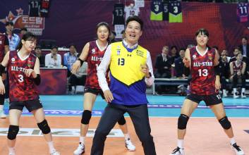 2023-2024 V-리그 올스타전이 27일 오후 인천 삼산월드체육관에서 열렸다. 2세트 여자부 경기에서 교체로 들어간 강성형 감독이 댄스 세리머니를 하고 있다. 인천=김민규 기자 mgkim1@edaily.co.kr /2024.01.27/ 2024.01.27 17:19