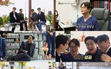 ‘틈만 나면,’에서 유재석, 유연석, 김희원, 주지훈이 절친 케미를 빛냈다.지난 26일 오후 방송된 SBS ‘틈만 나면,’ 14회에서는 유재석, 유연석이 ‘틈 친구’ 김희원, 주지훈과 함께 ‘틈 주인’ 동물병원과 호텔 바를 방문해 삶에 지친 사람들의 틈새를 웃음으로 메웠다.이날 주지훈은 김희원을 자신이 출연하는 작품의 감독님이라고 소개 한 후 “이번 드라마 감독님이다. 캐스팅 때부터 웃겼다. 갑자기 전화해서 ‘뭐하니? 형이 작품 하는데 너랑 했으면 좋겠다’라고 해서 무슨 역할로 봐야 되냐니까 ‘너 하고 싶은 거 해~’라고 했다”라며 ‘신인 감독’ 김희원의 패기 있는 면모를 공개해 유재석, 유연석을 박장대소하게 했다. 이때 유재석의 레이더망에 포착된 것은 다름 아닌 김희원의 뻣뻣한 폼. 이에 유재석이 “오늘 형사님으로 오신 거에요?”라며 장난에 시동을 걸자, 김희원은 “절대 아닙니다. 아침에 담이 심하게 와서 거동이 불편합니다”라고 해명에 나섰다.유재석, 유연석, 김희원, 주지훈의 첫 번째 틈 주인은 동물병원 수의사였다. 틈 주인은 8년 동안 진료해 온 동물을 떠나 보내며, 힘든 마음에 활력을 얻고자 신청했다고 밝혀 마음을 찡하게 했다. 이들이 도전하게 된 게임은 바로 ‘유 캔 두 잇!’이었다. 1단계는 4명 중 2명이 동물 간식 캔을 슬라이딩 시켜 목표 지점 안에 넣으면 성공. 걱정과 달리 김희원과 주지훈이 첫번째 연습에서 골인에 성공하자, 유재석은 “뭐야 지금 무빙이야?”라며 기분 좋은 출발에 환호했고, 유연석은 “나 이 형들이 이렇게 의욕적으로 할 줄은 몰랐어”라며 놀라움을 감추지 못했다. 결국 김희원이 ‘당구 마니아’다운 노련함을 발휘하며, 아슬아슬하게 끄트머리에 안착하고, 이어 주지훈이 깔끔한 중앙 골인으로 마무리하며 1단계 성공의 기쁨을 거머쥐었다. 2단계는 캔이 커지면서 난이도가 높아졌다. 이에 주지훈은 가죽 자켓까지 벗어 던지며 맹연습에 나섰지만, 마지막 도전까지 실패를 맛보게 됐다. 틈 주인은 되려 유재석, 유연석, 김희원, 주지훈을 위로하며 “오랜만에 아드레날린이 확 나오는 게 느껴졌다. 정말 좋았다”고 고마움을 전했다.네 사람은 미련 가득한 걸음으로 점심시간을 가졌다. 식사 후 길거리 생활 체육시설을 만난 유재석이 담이 풀리지 않은 김희원을 위해 “형 이런 거 해야 어깨 운동에 좋아”라고 운을 떼자, 김희원은 “예전에 이 운동 매일 했어”라며 잽싸게 한 자리를 차지했다. 이에 주지훈이 “어릴 때는 너무 쉬워 보이고 이게 왜 있나 했는데, 해 보면 시원하고 좋다”라며 길거리 운동에 가세, 김희원은 “해 본 사람은 자세가 나와. 이게 오십견에 시원하고 좋아”라고 자세 교정까지 나서 삽시간에 단체 길거리 운동 삼매경에 빠진 진풍경을 자아냈다. 이에 막내 유연석까지 “어우 이게 왜 이렇게 시원해~”라며 만족스러움을 드러내 유재석을 함박웃음 짓게 했다. 그런가 하면 유연석은 버스 안에서 ‘틈새 토크쇼’로 진행 실력을 뽐냈다. 유연석은 “’조명가게’는 어디로 찾아가면 되죠?”라는 시민의 돌발 질문에도 매끄럽게 대처하는 순발력을 발휘해 김희원을 감탄케 했다. 급기야 유연석이 ‘조명가게’부터 ‘틈만 나면,’까지 야무지게 모든 멤버들의 프로그램을 홍보하자, 유재석은 “연석아~형이 너무 뿌듯하다! 네가 홍보 요정이야. 소통 왕이에요”라고 엄지를 치켜들었다.두 번 째 틈 주인은 호텔 바 직원들이었다. 만 17년째 호텔리어로 근무 중인 틈 주인은 동료들에게 원동력을 주고 틈새 시간 재미를 선사하기 위해 신청했다고 이유를 밝혀 훈훈한 동료애를 더했다. 마지막 게임은 ‘칵테일 후후’로, 30초 안에 순서대로 칵테일 잔 5개에 탁구공을 불어 옮기면 성공. 떨어지면 맨 처음부터 다시 시작해야 하는 까다로운 룰에 주지훈은 “이거 호흡이면 다 되는 거죠? 들숨으로 옮겨도 되나요?”라고 생각지도 못한 제안을 해 유재석을 배꼽 잡게 했다. 세 번째 도전까지 유연석이 계속해서 탁구공을 떨어뜨리는 실수를 반복하자, 유재석은 “아니 오늘 왜 이러는 거야 연석아~”라고 안타까워했고, 유연석 역시 “이 게임 지면 집 앞인데 오지도 못한다”라며 걱정했다. 이때 보너스 쿠폰 라운드에서 주지훈이 단 5초를 남기고 마지막 공을 토스, 김희원이 00초 29라는 간발의 차를 남기고 1단계를 성공했다.2단계는 한 호흡으로 공을 옮겨야 하는 만큼 4명 중 1명만 성공해도 통과. 김희원은 아까의 긴장감과는 달리 “어디 한 번 해볼까~”라며 여유를 부려 유재석의 웃음보를 자극했다. 이때 주지훈이 6번째 시도에서 가볍게 성공하며 ‘백발백중’ 에이스로 등극했고, 주지훈은 “지난 6개월 동안 가장 짜릿했어”라며 승부의 기쁨을 누렸다. 3단계에 이르자 고난도의 게임에 모두가 초 긴장했다. 이에 8번째 도전에 나선 순간, 좀처럼 공을 넘기지 못하던 유재석이 단 한 번에 공 토스를 성공시키며, 3단계 풀 코스를 완성시켜 현장을 발칵 뒤집었다. 유재석은 “성공해서 너무 좋다. 무엇보다 우리 에이스 지훈이, 희원이 형! 합이 너무 좋았어”라고 짜릿한 환희의 순간을 나눴다. 이로써 유재석, 유연석, 