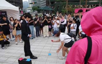 [포토] '오징어 게임' 시즌3 피날레 이벤트, 아이들도 즐기는 딱지치기