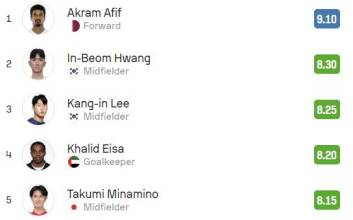 역습을 노린 요르단은 전반 16분 알나이마트가 첫 슈팅을 때렸지만, 카타르 골키퍼 바르샴이 쳐냈다. 전반 20분 희비가 엇갈렸다. 요르단 수비수 나시브가 ‘카타르 살라’ 아피프의 드리블을 막는 과정에서 발을 걸었고, 중국의 마닝 주심이 곧장 페널티 스폿을 찍었다. 페널티킥 키커로 직접 나선 아피프는 깔끔하게 처리하며 카타르에 리드를 안겼다. 대회 6호골을 기록한 아피프는 아이멘 후세인(이라크)과 동률을 이뤘다. 그러나 도움 3개까지 추가로 적립했던 아피프가 득점왕 등극에 가까워졌다.알다인(카타르)=김희웅 기자