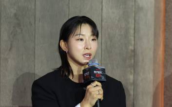 방송인 아모띠, 전 스켈레톤선수 윤성빈, 장호기 감독, 레슬링선수 장은실, 크로스핏선수 최승연, 씨름선수 김민재 등 각국의 비대면 참가자들이 24일 오후 서울 강남구 웨스틴 서울 파르나스에서 열린 넷플릭스 '피지컬: 아시아' 제작발표에 참석해 MC와 토크를 하고 있다.