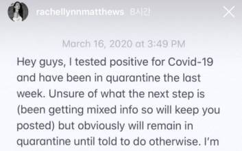 할리우드 배우 레이첼 매튜스도 코로나19 확진 판정을 받았다. 레이첼 매튜스는 16일(현지시간) 자신의 SNS에 '코로나19 양성 판정을 받고 지난주부터 격리돼 있다'고 알렸다. 그는 '다음 스텝이 무엇인지 확신할 순 없으나, 다른 지시가 있을 때까지 자가격리할 예정이다. 나는 현재 괜찮다. 그러나 무엇이라도 돕기 위해 약간의 정보를 이곳에 게시하고 싶다. 궁금한 점이 있으면 편하게 물어보라. 내가 할 수 있는 한 돕겠다'며 자신이 감염 후 겪은 증상을 설명했다. 레이첼 매튜스는 '현명하게 대처해야할 때다. 서로를 잘 돌보자'고 덧붙였다. 레이첼 매튜스는 '겨울왕국2'에서 엘사의 친구 허니마린의 목소리로 출연했다. '해피데스데이' 등 국내 관객들에게도 익숙한 작품에도 얼굴을 비쳤다. 이로써 톰 행크스와 리타 윌슨 부부를 시작으로 올가 쿠릴렌코·이드리스 엘바·크리스토퍼 히뷰, 레이첼 매튜스까지 다수의 해외 스타들이 코로나19 확진 소식을 알렸다. 박정선 기자 park.jungsun@jtbc.co.kr 2020.03.17 16:17