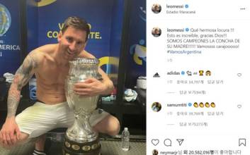 메시 코파 우승에 전 세계가 열광, '좋아요' 2000만 넘었다