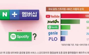 토종 음원 플랫폼(멜론·지니뮤직·플로)이 유튜브 뮤직 규제로 숨통이 트이나 했지만 또 다른 암초에 직면했다. 국내 1위 포털과 글로벌 최대 음원 스트리밍 서비스 스포티파이의 파트너십 가능성에 예의주시하며 전열을 가다듬고 있다.24일 업계에 따르면 네이버는 구독 멤버십 ‘네이버플러스 멤버십’ 콘텐츠 혜택에 스포티파이가 포함될 수 있다는 얘기가 나온 지난 5월 이후 현재까지 별다른 입장을 내놓지 않고 있다. 네이버 측은 “구체적으로 확인할 수 있는 내용이 없다”고 밝혔다.네이버플러스 멤버십(월 4900원)은 2020년 출시 후 네이버 쇼핑 최대 5% 적립과 티빙, 스포티비 나우 등 국내 위주의 파트너십 전략을 펼쳐왔다. 지난해 11월 넷플릭스와 제휴를 맺고 ‘넷플릭스 광고형 스탠다드 요금제’를 콘텐츠 혜택으로 선보였다.덕분에 소비자 리서치 기관 컨슈머인사이트의 올 상반기 조사에서 넷플릭스는 국내 OTT 시장에서 처음으로 절반 이상인 54%의 점유율을 찍었다. 넷플릭스 이용자 중 27%가 ‘네이버플러스 멤버십’으로 결제하는 것으로 조사됐다. 1000만명 이상으로 추정되는 이 멤버십 가입자도 이 기간 크게 늘었을 것으로 보인다.여기에 네이버는 지난 9일 마이크로소프트 엑스박스의 ‘PC 게임패스’까지 선택 옵션으로 포함했다. ‘클레르 옵스퀴르: 33 원정대’ 등 최신 게임을 콘솔 없이 클라우드 환경에서 즐길 수 있게 됐다.네이버와 스포티파이의 협업설에 이제 막 유튜브 뮤직 리스크를 해결한 토종 음원 서비스들은 다시 한숨을 쉴 수 밖에 없다.그간 구글은 월 1만4900원의 ‘유튜브 프리미엄’에 유튜브 뮤직을 끼워팔아 소비자 선택권을 제한했다는 비판을 받아왔다. 그러다 공정거래위원회가 제재 절차에 착수하자 광고만 뺀 ‘유튜브 프리미엄 라이트’(월 8500원)를 출시하는 자진 시정안을 내놓으면서 논란이 일단락됐다. 그런데 이번에는 네이버와 스포티파이 연합에 맞서야 하는 상황을 걱정하게 됐다.넷플릭스와 엑스박스 서비스 모두 네이버와 손을 잡으면서 절반 가까이 저렴해진 만큼, 스포티파이까지 네이버 구독 생태계 안에 들어가면 국산 서비스의 입지가 위태로워질 수밖에 없다. 가뜩이나 스포티파이는 지난해 10월 내놓은 무료 요금제 효과로 무섭게 치고 올라오고 있다.앱 분석 서비스 와이즈앱·리테일의 지난 5월 국내 이용자 순위에서 스포티파이는 389만명으로 역대 최고를 찍으며 지니뮤직(259만명), 플로(171만명)을 누르고 3위에 올랐다. 유튜브 뮤직이 1044만명으로 선두였고, 멜론(637만명)이 2위로 자존심을 지켰다.일단 토종 음원 서비스들은 내실 다지기에 나섰다. 멜론은 이달 초 AI 추천 트렌드를 반영해 모바일 홈화면과 두 번째 탭을 대대적으로 개편하고, 음악 큐레이션 서비스 ‘DJ 말랑이’를 선보였다.모바일 홈화면은 트렌디한 음악과 오리지널 콘텐츠의 ‘발견’에 힘을 실었다. 두 번째 탭은 개인화 추천 서비스를 총망라했다. 유행하는 음악을 살펴보면서 이용자에게 딱 맞는 콘텐츠를 동시에 감상할 수 있도록 고도화했다.지니뮤직은 이미 지난해 7월 단장을 마쳤다. 이용자가 감상한 음악을 기반으로 재생목록을 추천하는 ‘빠른 선곡’을 메인 서비스로 내놨다. 플로는 음원 라이브러리를 차곡차곡 쌓고 있다. 2023년 5000만곡 돌파 이후 2년 만인 이달 중순 1억곡을 달성했다.업계 관계자는 “네이버가 자체적으로 운영하는 음원 스트리밍 서비스(바이브)를 외면할 수 없을뿐더러 이미 넷플릭스, 마이크로소프트(PC 게임패스)와 제휴를 맺는 과정에서 적지 않을 투자를 한 만큼 스포티파이까지 품기는 쉽지 않을 것”이라고 내다봤다.정길준 기자 kjkj@edaily.co.kr 2025.07.25 08:00