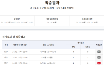 축구토토 승무패 84회차 적중 결과...‘총 적중금 13억, 1등 적중 2건'