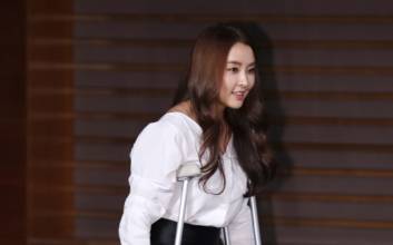 [포토]정유미, 부상에 목발짚고 기자간담회 참석
