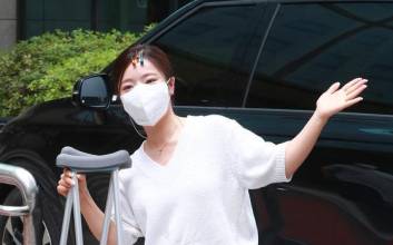'십자인대파열' 박나래 "지금 퇴원했습니다!" 목발짚고 재활 中