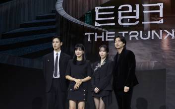 배우 조이건, 정윤하, 서현진, 공유가 26일 오전 서울 강남구 라움아트센터에서 열린 넷플릭스 오리지널 '트렁크' 제작발표회에 참석해 포즈를 취하고 있다. '트렁크'는 호숫가에 떠오른 트렁크로 인해 밝혀지기 시작한 비밀스러운 결혼 서비스와 그 안에 놓인 두 남녀의 이상한 결혼 이야기. 29일 공개. 서병수 기자 qudtn@edaily.co.kr /2024.11.25/ 2024.11.26 11:56