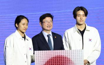 2022 항저우 아시안게임이 열흘도 남지 않은 가운데 대한민국 선수단이 결단식에서 선전을 다짐했다.대한체육회는 12일 서울 송파구 올림픽공원 올림픽홀에서 열린 2022 항저우 아시안게임 대한민국 선수단 결단식을 개최했다. 아시안게임으로 향하는 대한민국 국가대표 선수들과 지도자들은 물론 박보균 문화체육관광부 장관, 이기흥 대한체육회 회장, 최윤 선수단장과 시·도 체육회와 각 종목 협회까지 모든 관계자가 결단식을 위해 모였다. 이번 대회를 위해 맞춘 하얀 단복을 입은 선수들이 올림픽홀을 가득 메웠다. 박보균 장관은 윤석열 대통령의 격려사를 대독했다. 윤 대통령은 "묵묵히 훈련에 전념해 온 선수들이 너무 자랑스럽다. 코로나19로 대회가 1년 연기되는 어려움이 있었지만, 선수들의 강인함과 열정은 국민들에게 큰 감동을 안길 것"이라며 "대회가 열흘 앞으로 다가왔다. 남은 기간 훈련에 만전을 기하고 최고의 기량을 펼치길 바란다. 국민들과 함께 마음으로 뛰며 선수들의 열정과 도전을 응원하겠다"고 했다.이기흥 회장은 개식사에서 "올해 대회는 한국 스포츠의 새로운 출발점이 될 거다. 선수들의 새로운 도전과 열정을 만나볼 수 있을 것으로 기대한다"며 "대회가 연기된 상황에서도 선수들은 굵은 땀방울을 쏟으며 훈련에 매진했다. 그동안의 노력과 성과를 거둘 수 있도록 기량을 맘껏 발휘해 목표한 성과를 이루길 바란다"고 했다. 이 회장은 "국가대표로서 스포츠 외적으로도 성숙한 모습을 보여주면 좋겠다. 부상 및 안전사고 없이 대회를 무사히 마치고 귀국할 수 있게 건강에 각별히 주의해 주길 바란다"고 했다. 선수단 답사는 최윤 단장이 맡았다. 최 단장은 "국가대표로서 이 자리에 있는 모든 선수의 노력을 누구보다 잘 안다. 후회 없는 경기를 하고 오는 것만으로도 (국민들께서) 만족해 주셨으면 좋겠다. 그동안 흘린 땀의 가치가 메달 색으로 결정되지 않았으면 좋겠다"고 독려했다.최 단장은 비인지 스포츠에 대한 국민들의 관심과 응원을 강조했다. 그는 "이번 대회부터는 인기 종목뿐만 아니라 비인지 종목까지 널리 알리는 계기가 됐으면 좋겠다. 수만은 스포츠가 있고, 그 안에는 감동적인 드라마가 있다. 비인지 종목도 사랑해 주신다면 국민들도 더 큰 행복을 맛보실 수 있을 것"이라고 기대했다. 대한민국 선수단은 오는 23일부터 다음 달 8일까지 항저우에서 열리는 이번 대회에 39개 종목에 총 1140명의 선수와 지도자를 파견한다. 대한체육회는 이번 대회 목표로 금메달 45~50개 획득과 종합 3위를 내걸었다. 선수단 본진은 이달 20일 항저우로 향한다.송파구=차승윤 기자 chasy99@edaily.co.kr 2023.09.12 16:32