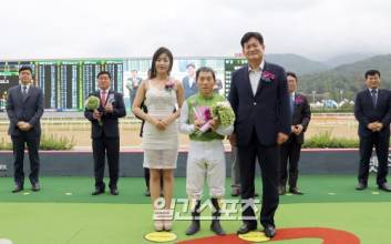 최고권위의 '제37회 일간스포츠배 대상경주'가 21일 오후 경기도 과천시 렛츠런파크 서울에서 제9경주로 펼쳐졌다. 우승을 차지한 ‘심장의 고동’박태종기수가 가수 미스트롯 정다경, 김종길 한국마사회부회장과 포즈를 취하고 있다.. 한편, 지난 1983년부터 시행돼 유구한 역사를 가진 ‘일간스포츠배 대상경주’는 2억원의 총상금을 걸고 2등급 국산마들이 모여 1800m 장거리 자웅을 가린다. 과천=정시종 기자 jung.sichong@jtbc.co.kr /2019.07.21.