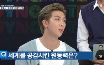 '뉴스9' BTS RM "일곱 멤버, 때론 가족처럼 때론 파트너처럼"