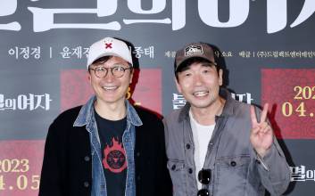 배우 박성근, 박원상이 21일 오후 서울 용산구 CGV용산아이파크몰에서 진행된 영화 '불멸의 여자' VIP 시사회에 참석해 포토타임을 갖고 있다. '불멸의 여자'는 손님에게 친절한 서비스를 강요당하는 화장품 판매사원 '희경'과 눈가 주름방지용 화장품 반품을 요구하는 갑질 손님 '정란' 사이에 벌어지는 이야기를 그린 파격 잔혹극이다. 오는 4월 5일 개봉. 서병수 기자 qudtn@edaily.co.kr /2023.03.21. 2023.03.21 19:34