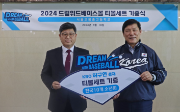 허구연 한국야구위원회(KBO) 총재가 국가대표팀 코칭스태프와 함께 티볼세트 후원과 함께 스포츠 교육을 진행했다.KBO는 22일 "허구연 총재가 지난 18일 서울소년원(서울고봉중고등학교)에서 '전국 소년원 티볼세트 후원 기증식'을 열었다"고 소개했다. 이번 기증식은 지난 3월 한국티볼연맹을 통해 허구연 총재 자비로 3천만 원 상당의 티볼 150세트를 기부했던 '드림 위드 베이스볼 티볼세트 기증식'의 일환으로 진행됐다.허 총재는 취약계층 학생들의 스포츠 교육 및 안정적 사회 복귀를 위한 지원 중 일부로 티볼 세트를 기증햇고, 한국티볼연맹을 통해 전국 소년원에 각각 티볼 4세트를 후원했다. 티볼 세트는 티볼 배트, 공, 배팅 티 세트, 베이스 세트, 가방, 지도서로 구성되어 있다.