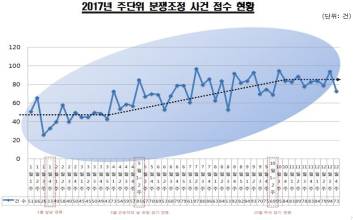 지난 한 해 동안 한국공정거래조정원(이하 조정원)은 접수 받은 조정 사건 10건 중 8건의 사건을 처리한 것으로 나타났다.조정원 지난해 조정 신청 3354건을 접수 받아 이 중 3035건을 처리해 조정 성립률이 87%에 달했다고 23일 밝혔다.전체 사건 처리 중 소제기, 각하 등 중지한 사건을 제외하고 조정이 성립된 건수는 10건 중 8건에 달하는 수준이다.조정원은 공정거래위원회 산하의 분쟁 조정을 담당하는 기관으로, 불공정거래행위·가맹사업거래·하도급거래·대규모유통업거래 및 약관 등 분야별 피해에 대해 무료로 구제를 받을 수 있도록 하고 있다.접수된 사건과 처리 건수 모두 전년보다 각각 38%, 36%씩 증가했다.분야별 접수 내역으로는 일반불공정거래 분야가 전년(540건)보다 79% 증가한 964건으로 접수됐고, 가맹사업거래 분야가 전년(593건)보다 31% 증가한 779건, 하도급거래 분야가 전년(1143건)보다 24% 늘어난 1416건 등이었다.분야별 처리 내역은 일반불공정거래 분야가 전년(482건)보다 78% 증가한 858건, 가맹사업거래 분야가 전년(523건)보다 43% 증가한 750건, 하도급거래 분야가 전년(1088건)보다 16% 증가한 1267건 등이었다.평균 사건 처리 기간은 44일로 전년(35일)보다 늘어났으나 법정 기간인 60일 내에는 처리했다.또한 1470건의 조정 성립을 통해 피해구제 성과는 947억원으로 전년보다 4% 소폭 증가했다. 피해구제 성과는 조정에서 문제를 해결해 불필요한 소송을 줄이는 등의 성과를 말하는 것으로, 피해구제액은 953억원, 절약된 소송비용은 94억원으로 집계됐다.일반불공정거래 분야는 총 858건 중 거래상 지위를 남용한 불이익제공행위가 309건(36.0%)으로 가장 많았고, 거래거절(130건), 사업활동방해(46건) 등이 뒤따라싿.가맹사업거래 분야는 정보공개서 미제공행위가 124건(16.5%)으로 가장 많았고, 허위·과장 정보제공행위(105건), 부당한 손해배상의무 부담(38건), 부당한 계약 해지(33건) 등 순이다. 하도급거래 분야는 하도급대금 미지급행위가 908건(71.7%)으로 가장 많았다. 이어 부당한 하도급대금 결정(101건), 부당한 위탁취소(74건), 하도급대금 부당감액(39건) 등이었다.조정원은 "지난해에는 일반불공정거래, 가맹사업거래 및 하도급거래의 주요 분쟁 조정 분야의 사건 접수와 처리가 크게 늘었다"며 "새 정부 출범 이후 경제사회적 약자 보호가 강조되면서 일상 경제생활에서 발생하는 불공정거래 행위 관련 분쟁을 해결하고자 하는 수요가 늘어난 것"이라고 했다.조은애 기자 cho.eunae@joins.com 2018.01.23 12:00