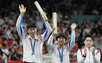 한국 질문엔 '냉전', 시상대에선 '훈풍' 미소...8년 만에 돌아온 북한의 양면 [2024 파리]