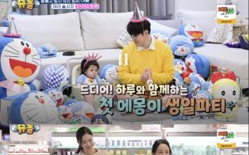 [TVis] 심형탁, 하루와 ‘에몽이 생일파티’… 장난감 피아노까지 ‘훈훈 父子 케미’ (슈돌)