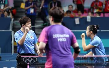 한국 탁구가 혼성 복식의 미래로 육성해 온 임종훈(27·한국거래소)-신유빈(20·대한항공) 조가 드디어 올림픽 시상대에 올랐다.세계랭킹 3위 임종훈-신유빈 조는 30일(한국시간) 아레나 파리 쉬드4에서 열린 2024 파리 올림픽 탁구 혼합복식 준결승에서 홍콩의 웡춘팅-두호이켐 조(4위)를 만나 게임 스코어 4-0(11-5, 11-7, 11-7, 14-12)으로 완벽하게 승리했다.앞서 준결승에서 '최강' 중국과 비등한 경기에도 역전을 허용, 석패했던 신유빈과 임종훈은 동메달 결정전 1게임부터 질주했다. 경기 시작하자마자 6점을 선취하며 질주했다. 번갈아 테이블에 붙으며 상대를 공략했고, 상대가 어려운 코스로 찔러도 여유있게 대처했다. 초반 기세를 그대로 이어간 신유빈과 임종훈은 11-5, 넉넉한 점수 차로 1게임을 가져갔다.