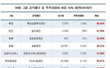 30대 그룹 공익재단, 목적사업비가 총수입 절반도 안돼