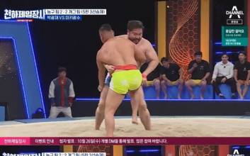 ‘천하제일장사’의 농구팀 우지원이 머슬팀 양치승을 잡채기로 누르며 무서운 다크호스로 급부상했다. 지난 7일 방송된 채널A·채널S 스포츠 예능 ‘천하제일장사’ 4회에서는 앞서 본선행이 확정된 격투팀과 개그팀에 이어, 야구팀과 농구팀이 추가로 본선 합류를 확정짓는 모습을 보여줬다. 흥미진진한 승부에 이날 방송은 닐슨코리아 집계 결과 2.6%(채널A·채널S 유료방송가구 합산 수치)의 시청률을 기록해 전주 대비 상승했으며, 이제는 시청률 3%를 넘볼 정도로 입소문이 퍼지고 있는 추세다. 우선 ‘1조 예선전’에서 격투팀에게 1패씩을 안은 유도팀과 야구팀은이 본선 진출을 위한 맞대결에 돌입했다. 각 선수들의 대결 결과, ‘2대2'가 된 팽팽한 상황 속에서 조준현과 최준석이 마지막 경기에 임했다. 여기서 최준석은 들배지기 기술로 조준현을 가볍게 눕히며 팀의 본선 진출을 확정, 짜릿한 승리를 맛봤다. ‘예선전 2조’에서는 앞서 개그팀에게 각각 1패를 떠안은 머슬팀과 농구팀이 본선을 향한 마지막 대결을 펼쳤다. 첫 번째 경기로 머슬팀은 전욱민을, 농구팀은 문경은을 출전시켰다. 대결이 시작되자 전욱민은 왼배지기 기술로 3초 만에 문경은을 쓰러뜨렸다. 다음으로 양치승과 우지원이 맞붙었다. 샅바싸움부터 치열한 몸싸움이 벌어졌는데, 우지원은 휘슬이 울리자마자 압도적인 키 차이를 이용해 잡채기 기술로 양치승을 제대로 눌렀다. 하지만 접전 끝 머슬팀과 농구팀의 승부는 다시 ‘2대2’가 되었고 마지막 한판을 앞두고 양치승과 우지원이 다시 만났다. 사생결단의 대결이었지만, 우지원은 또다시 시원한 잡채기 기술로 양치승을 꺾으며 팀의 본선행을 확정지었다. 매주 예측불허의 명승부가 펼쳐져 안방에 씨름 열풍을 몰고 온 ‘천하제일장사’는 채널A와 SK브로드밴드가 공동 제작하며, 매주 월요일 밤 9시 30분 채널A와 채널S에서 만날 수 있다. 이지수 디지털뉴스팀 기자 이지수