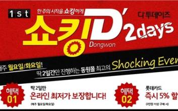식품전문쇼핑몰 동원몰이 매주 월요일과 화요일 이틀 간 20개 상품을 최저가로 판매하는 ‘디투데이즈’(D'2days) 행사를 상시 진행한다고 14일 밝혔다.‘디투데이즈’는 매주 월요일과 화요일 이틀간 동원F&B 상품, 일반식품, 생활용품 등 3개 카테고리 총 20개 상품을 정상가에서 최대 60% 이상 할인된 온라인 최저가로 판매하는 행사다. 동원F&B 상품 4개, 일반식품과 생활용품은 각각 8개 등 총 20개 상품을 판매한다.행사 첫 주인 14일, 15일은 동원 미네마인과 동원 개성김치왕만두, 고창황토쌀, 웅진 하늘보리, 락앤락, 화장지 등을 판매한다. 또한 3만원 이상 롯데카드로 구매할 시 5% 즉시할인 혜택을 받을 수 있으며 일부 상품의 경우 구매수량에 제한이 있을 수 있다. 이소은 기자 luckysso@joongang.co.kr 2014.04.14 15:30