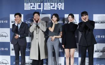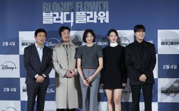 배우 성동일, 신승환, 금새록, 정소리, 려운, 한윤선 감독이 27일 오전 서울 용산구 CGV용산아이파크몰에서 열린 디즈니+ 오리지널 '블러디 플라워' 제작발표회에 참석해 포토타임을 갖고 있다.'블러디 플라워'는 모든 불치병을 치료할 수 있는 능력을 가진 연쇄살인범을 둘러싼 사람들의 이야기를 그린 미스터리 스릴러. 오는 2월 4일 공개.서병수 기자 qudtn@edaily.co.kr /2026.01.27/ 2026.01.27 11:59