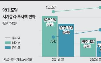 네이버와 카카오가 성장 기대감을 한몸에 받았던 과거와 달리 요즘은 어두운 터널을 좀처럼 빠져나오지 못하고 있다. 한때 시가총액 3위를 다퉜지만 투자 시장 위축과 경기 불황의 직격탄을 맞으며 거품이 빠졌다는 평가가 나온다.두 회사는 이런 암울한 상황 속에서도 미래 먹거리 발굴에 여념이 없다. '최대 포털' '국민 메신저'를 넘어선 새로운 정체성을 확보하기 위해 과감히 지갑을 열었다. 주가 떨어졌지만 투자 늘렸다29일 금융감독원에 따르면 양대 포털의 지난해 연구·개발비는 실적 악화와 기록적인 주가 하락에도 전년 대비 상승했다.네이버는 2022년 말 기준 1조8091억원을 연구·개발에 썼다. 전년보다 9.3%가량 늘었다. 연간 매출에서 연구·개발비가 차지하는 비중이 22.01%에 달했다.2017년까지만 해도 4개에 불과했던 연구 실적은 2020년 50개로 정점을 찍은 뒤 두 자릿수를 유지하고 있다. 현재 초거대 인공지능(AI) 모델 '하이퍼클로바'에 기반을 둔 글쓰기 등 창작 기능과 대화형 검색 서비스, 동영상 번역 기술 등 다양한 연구하고 있다.이런 노력 덕분에 네이버는 현재까지 검색·플랫폼·모바일·광고·AI 등 분야에서 2663건의 특허를 보유하고 있다. 카카오도 신성장 동력을 위한 투자를 아끼지 않았다.지난해 1조213억원을 연구·개발에 투입했는데, 이는 2년 전과 비교해 2배에 달하는 수준이다. 매출 대비 비중도 14.4%로, 전년보다 2%포인트 커졌다.카카오 관계자는 "연구·개발의 인건비와 용역·인프라 수수료, 상각비 등을 포함한다"며 "개발을 전문으로 하는 회사는 영업비용의 상당 부분을 개발비로 분류하고 있다"고 말했다.카카오는 기술·인프라·서비스·비즈니스 부문 아래 총 9개의 연구실을 운영하며 카카오톡 등 핵심 서비스의 품질을 개선하고 있다. 또 AI에 특화한 계열사 카카오브레인은 챗GPT의 등장으로 후끈 달아오른 생성 AI 시장에서 조금씩 성과를 보이고 있다.자체 개발한 이미지 생성 AI 모델 '칼로'를 적용한 창작 플랫폼 '비 디스커버'를 선보인 데 이어 한국어 AI 챗봇 '다다음'을 이달 시범 서비스로 내놨다가 1만2000명의 이용자가 몰려 하루 만에 일시 중단하는 등 호응을 얻었다.네이버와 카카오는 반도체 대장주까지 추격하며 시총 70조원을 찍었던 2021년이 황금기였다. 그러다 무리한 사업 확장과 독점 등 우려로 정부가 규제 논의에 나서자 눈치를 살피기 시작했다. 여기에 지정학적 리스크에 따른 경기 불황으로 금리 인상 기조가 이어지면서 가치에 투자하는 성장주가 상대적으로 큰 타격을 입었다.광고 매출 의존도 탈피 과제지금의 위기를 탈출하기 위해 단순한 수익 구조부터 손봐야 할 것으로 보인다. 두 회사 모두 광고 매출 의존도가 높다. 신사업도 네이버는 커머스, 카카오는 콘텐츠에 쏠려있는 상황이다.네이버의 2022년 연간 매출 8조2201억원 가운데 검색·디스플레이 등 서치플랫폼은 43%의 압도적 비중을 차지했으며, 커머스가 18%로 뒤를 이었다.같은 해 카카오의 카톡·다음 광고 등을 포함한 플랫폼 매출 비중은 전체의 53%로 집계됐다. 나머지는 게임·음악·스토리 등 콘텐츠가 책임졌다. 이에 양대 포털의 또 다른 성장 엔진을 찾아야 하는 투자 책임자들의 어깨가 무거워졌다.네이버는 차세대 커뮤니티와 글로벌 진출을 미션으로 내걸었다. 이를 위해 북미 최대 패션 C2C(개인 간 거래) 포시마크를 올 초 1조6700억원에 품었는데, 어려운 시기에 무리한 지출을 한 것 아니냐는 투자자들의 걱정을 샀다.김남선 네이버 CFO(최고재무책임자)는 지난달 실적 컨퍼런스콜에서 "비용 효율화 노력으로 에비타(이자·세금·감가상각 전 순이익)는 올해 1분기에 충분히 흑자를 달성할 수 있다"고 자신했다.카카오는 지난 28일 주주총회에서 배재현 공동체 투자총괄 대표(CIO)를 사내이사로 앉혔다. 배재현 CIO는 자본 유치와 투자 업무 전반을 맡고 있다. SM엔터테인먼트 인수와 1조2000억원 규모의 해외 투자 유치를 이끈 인물이다.카카오 관계자는 "카카오에 대한 깊은 이해도와 전문성을 바탕으로 주요 경영 사안에 대해 의견을 제시하고 미래 지향적인 가치를 구현하는 등 다방면에서 중추적인 역할을 할 수 있을 것이라고 기대한다"고 말했다.정길준 기자 kjkj@edaily.co.kr 2023.03.30 07:00