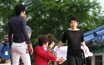 경희대학교 평화의 전당에서 열린 제47회 백상예술대상 시상식에서 개그맨 박성호와 동료들이 레드카펫을 밟고 있다.경희대=특별취재반 2011.05.26 19:10