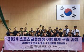 대한세팍타크로협회가 9일 “대한민국 여자 세팍타크로 국가대표팀과 일본 여자 국가대표팀이 오는 11일까지 충청북도 진천군 진천선수촌에서 합동훈련을 펼친다”라고 밝혔다.협회는 “2024년 스포츠교류협정 이행체계 구축사업은 작년에 이어서 올해도 진행하며 대한세팍타크로협회와 대한체육회가 각각 주최, 주관하고 문화체육관광부와 국민체육진흥공단이 후원하며 국가 간 스포츠 교류협력 강화를 통한 대한민국의 스포츠 외교력 강화를 목적으로 한다”라고 설명했다.협회에 따르면 이번 사업에는 총 15명의 일본 여자 세팍타크로 국가대표팀 선수단을 초청해 진행된다. 일본 여자 세팍타크로 국가대표팀은 지난 5일 김포국제공항으로 입국했다. 이후 진천선수촌으로 입촌했다.협회는 “세팍타크로의 신흥국으로 부상하고 있는 일본 여자 세팍타크로 대표팀과 동아시아의 강국인 대한민국 여자 세팍타크로 대표팀은 합동훈련을 및 연습경기를 통해 전력을 보완하고 양국의 교류를 강화시킬 계획”이라고 부연했다.합동훈련에 참가하는 김무진 여자 대표팀 감독은 “일본 세팍타크로 대표팀과의 합동훈련 및 연습경기를 통해 작년의 남자 국가대표팀처럼 서로 알아가면서 함께 발전하면 좋을 거 같다. 같은 세팍타크로 경기인으로서 친해지며 인적 네트워크를 형성했으면 하고 두 팀 모두 훈련을 통해 발전하여 다음 국제대회에는 좋은 성적을 기록하였으면 좋겠다”라고 전했다.미사와 마사루 일본세팍타크로협회 부회장은 “작년에 이어서 스포츠교류협정 이행체계 구축사업을 진행해서 긍정적으로 생각한다. 특히 국가대표팀 선수단이 훈련하는 진천선수촌 내에서 훈련할 수 있게 되어서 감사하고 양국 여자 선수단이 발전을 위한 정보를 교류하여 2025년에 참가하는 국제대회에서 모두 정상의 자리에서 만났으면 좋겠다”라고 전했다.협회에 따르면 일본 여자 대표팀은 오는 11일 일본으로 떠난다.김우중 기자 2024.12.09 11:12